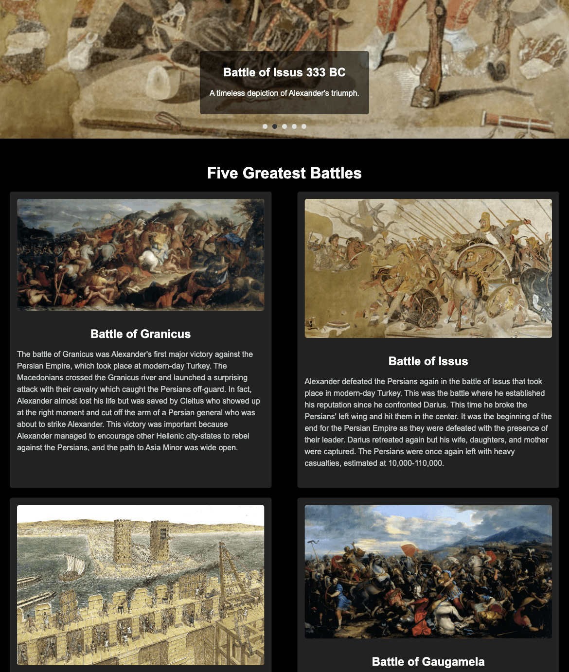 “Alexader’s five greatest battles”
